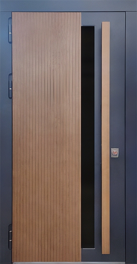 Металлическая дверь с наборными панелями МДФ, узким стеклом и вертикальной ручкой идеальный выбор для тех, кто ищет баланс между стилем и функциональностью. МДФ-панели устойчивы к механическим повреждениям и погодным условиям. Создают эффект архитектурной завершённости. Дизайн-проект подойдет для тех, кто хочет подчеркнуть индивидуальность.